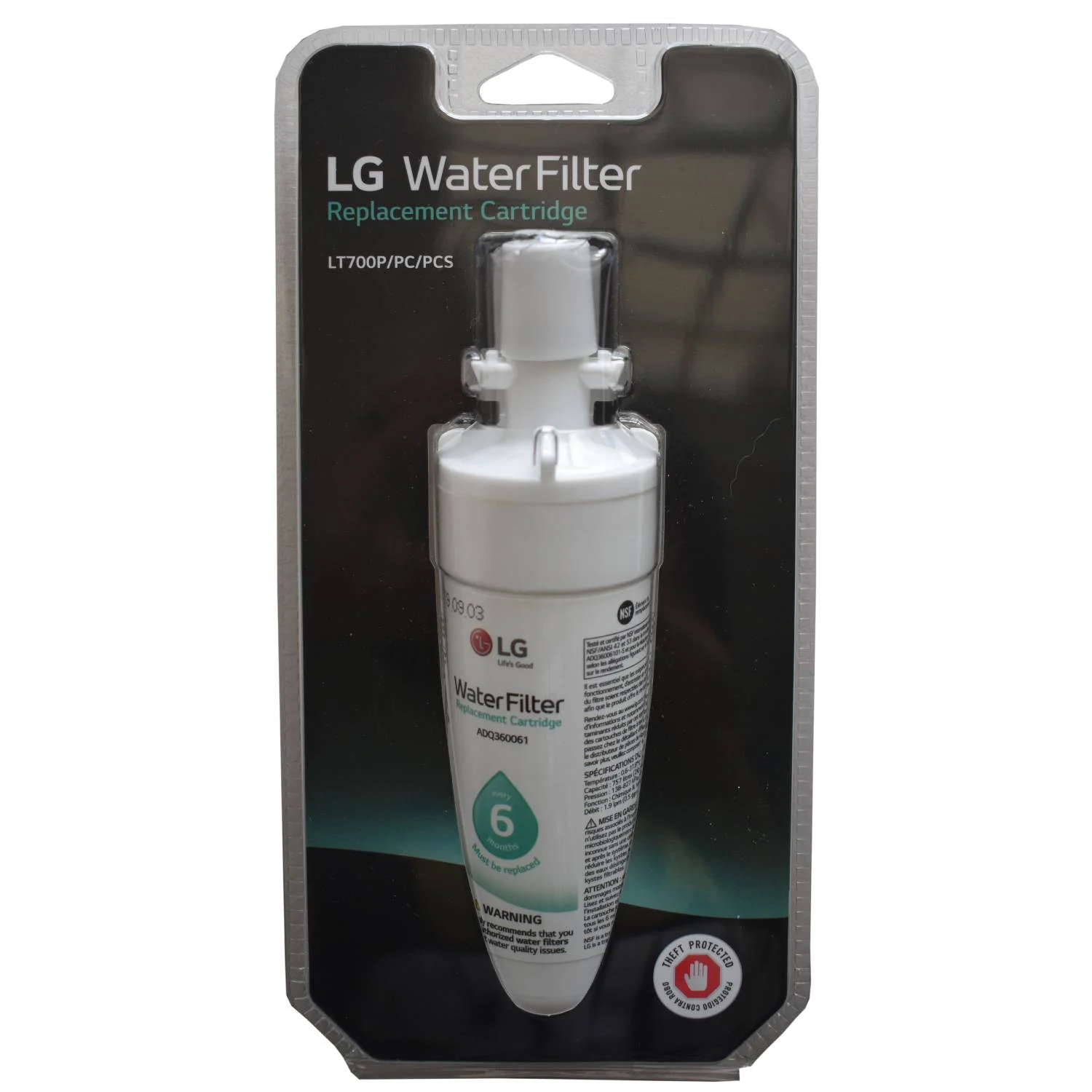 The AGF80300702 (LT700P) genuine LG refrigerator water filter delivers cleaner, better-tasting water and ice.